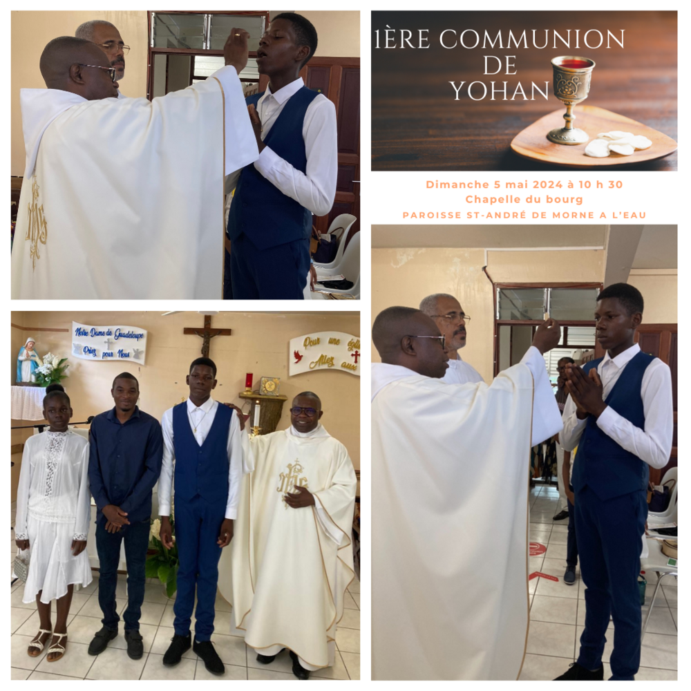 C'est en ce 6ème dimanche du temps pascal que le jeune Yoan, recommençant, a reçu pour la première fois la communion. Son parrain, sa mère, sa soeur [...]