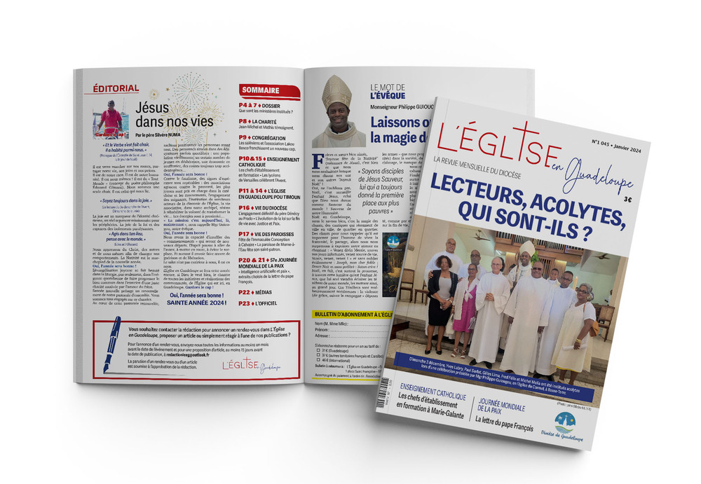 Église en Guadeloupe est bien plus qu’un bulletin diocésain : c’est une revue de référence qui, chaque mois, vous invite à plonger au cœur de la vie de l’Église locale, à comprendre les grands enjeux de la société à la lumière de l’Évangile, et à découvrir les initiatives, visages et engagements qui font la richesse de notre diocèse.